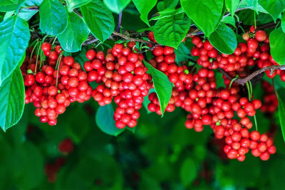 - Պտուղներ: Շատ գեղեցիկ, փոքր, կարմիր հատապտուղների խիտ ողկույզներ, որոնք հասունանում են աշնանը (սեպտեմբեր-հոկտեմբեր): Պտուղները հայտնի են իրենց յուրահատուկ համով, որն ընդգրկում է հինգ հիմնական հիմքերը՝ թթու, քաղցր, դառը, կծու և աղի, այստեղից էլ՝ «հին համերի պտուղ» անվանումը։